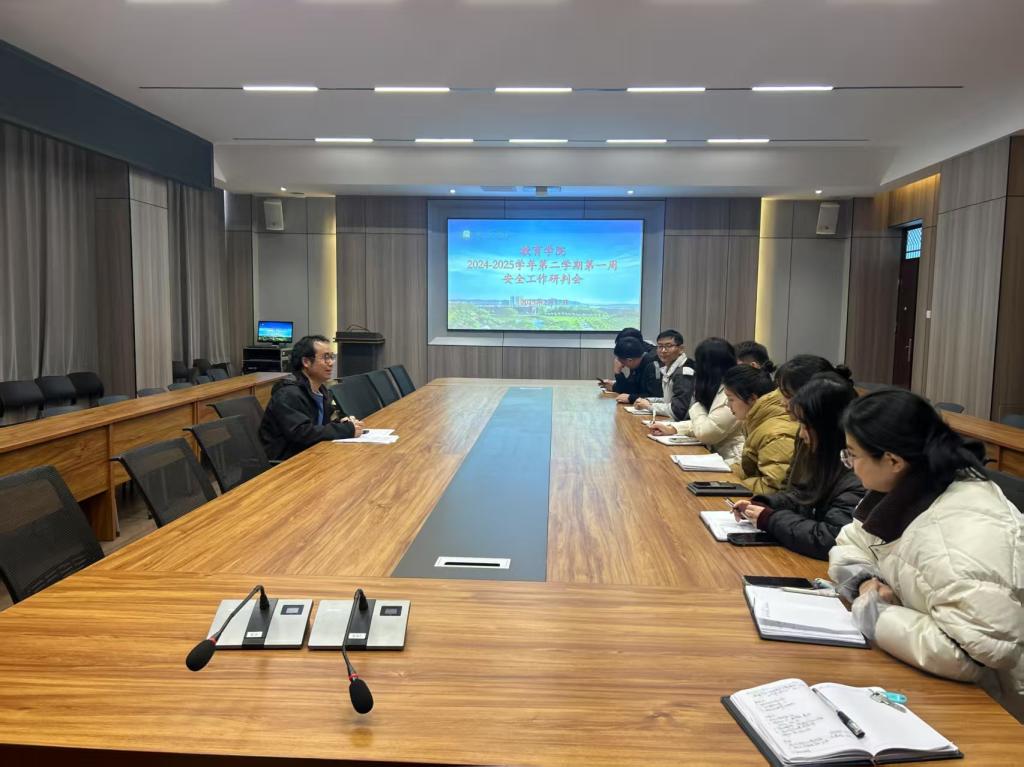 进一步强化校园安全管理,确保新学期各项工作平稳有序推进,2月17日,我院在社科楼109会议室召开了2024-2025学年第二学期第一周学生安全工作例会,学工干事胡超及全体辅导员参加了会议。会议由胡超主持。