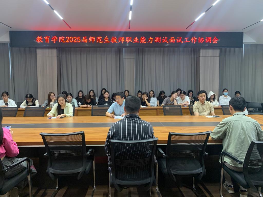 4月18日上午,太阳集团tyc138组织全体考务人员、校内面试评委、学生助理及2021级考生代表,在社科楼109会议室举行了2025届师范生教师职业能力测试面试工作协调会。会议由教学干事刘勋达老师主持,教学副院长段海丹参加会议。