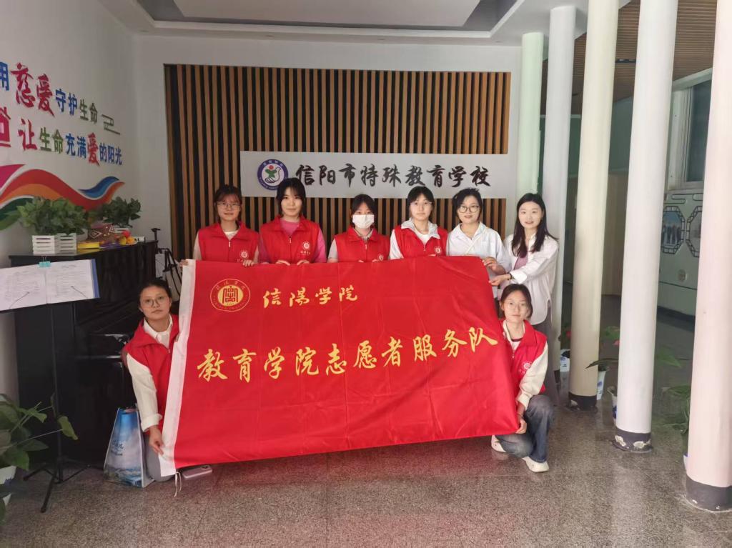 为培养大学生的社会责任感,助力特殊儿童健康成长,太阳集团tyc138爱心支教团于5月9日下午走进信阳市特殊教育学校,开展了“爱育无声,筑梦特教”志愿支教服务活动。带队老师刘俊言、李鑫、姜红和六名志愿支教学生参与了此次活动。