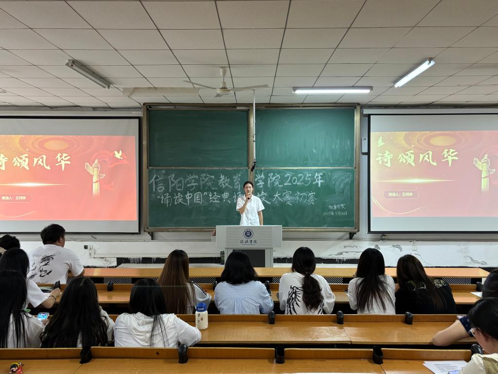 为积极响应党的二十大和二十届二中、三中全会精神,深入弘扬中华优秀传统文化,进一步提升同学们的语言文字应用能力与经典诵读素养,我院于5月14日下午在社科楼112教室举办了2025年“诵读中国”经典诵读大赛。此次比赛以经典为舟楫,以文化为灯塔,在提升学生语言素养与审美能力的过程中,筑牢道德根基,厚植文化自信土壤,培育勇立时代潮头、腹有文化底蕴、肩扛时代担当的新青年。