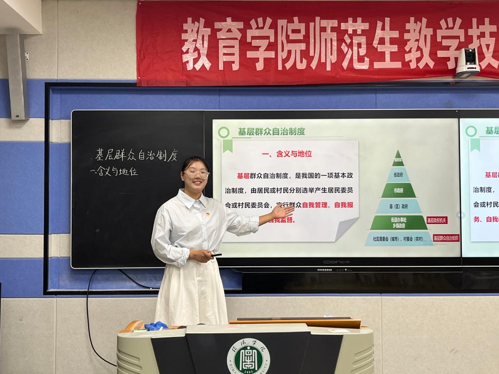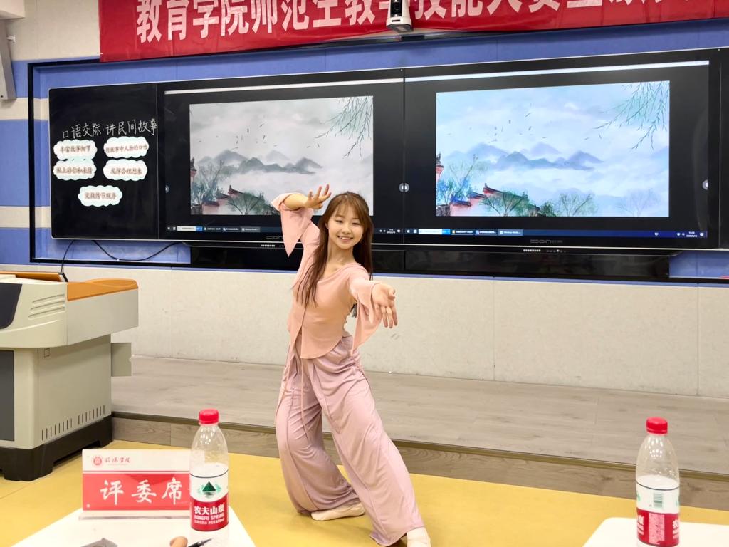 比赛严格遵循“以赛促练、以评促教”原则,设置三大考核模块:微型课环节要求选手在10分钟内完成完整教学片段展示,重点考察课程设计逻辑与课堂驾驭能力;答辩环节由评委针对教学设计即时提问,选手需在2分钟内作出专业应答,检验其教育理论应用与临场应变能力;才艺展示环节则限时5分钟,选手通过艺术表演展现综合素质,凸显师范生多元发展特质。在微型课展示中,各专业选手立足学科特色展现教学智慧,才艺展示环节更是异彩纷呈,朗诵、魔术、民族舞等表演穿插其间,充分展现师范生"一专多能"的职业素养。