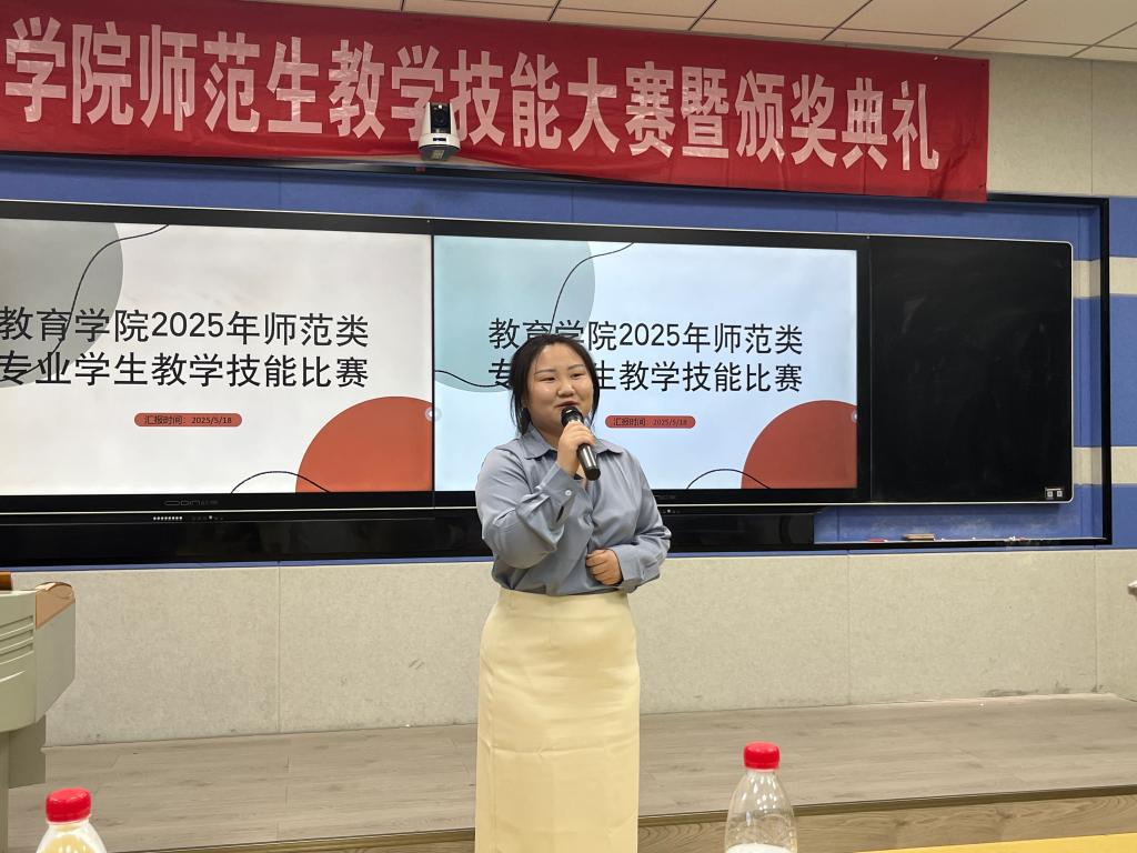 5月20日,太阳集团tyc138在人文楼109教室举办了2025届师范生教学技能大赛复赛。本次比赛邀请了青年教师康耀华、刘勋达、李可会、王孟慧、王焕、杨贝贝、李丽华担任评委,教育学、小学教育、心理学三个专业的10位选手同台竞技,通过微型课、答辩、才艺展示三大环节的激烈角逐,全面展现了新时代师范生的专业素养与创新教学能力。