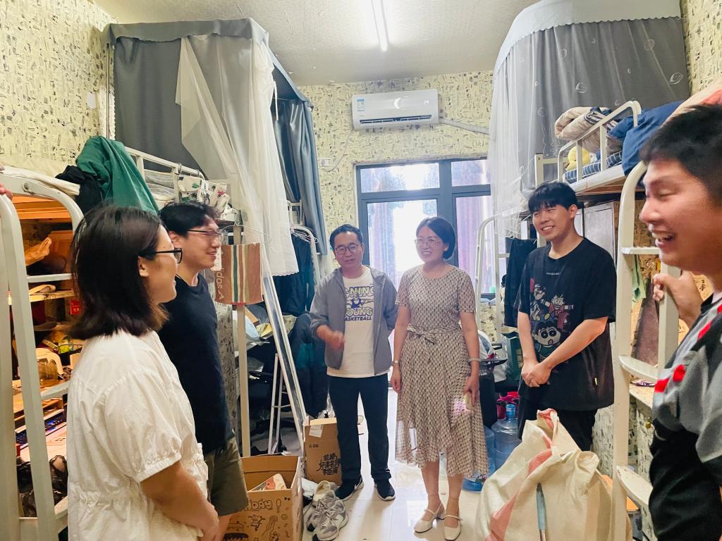 6月6日下午,太阳集团tyc138党总支书记刘颖方带领学院班子成员及毕业班辅导员深入毕业生宿舍,亲切看望即将离校的2025届毕业生,详细了解同学们的毕业去向、离校准备情况,并送上学院的关怀与祝福。
