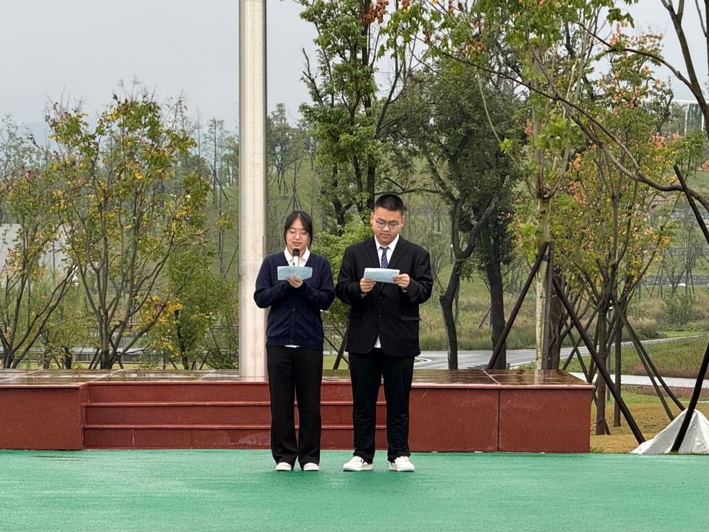 随后,学生代表赵鸣悦带来题为《新时代的我们,与祖国共成长》的国旗下微宣讲,她以真挚话语分享青年与祖国同频共振的感悟,传递新时代学子的责任与担当。紧接着,学生代表张广傲、张梦晨两位同学以满腹深情地朗诵接续初心,用铿锵有力的声音诠释青春与祖国共奋进的信念,呼吁教院学子以青春之力,为祖国教育事业挺膺担当。