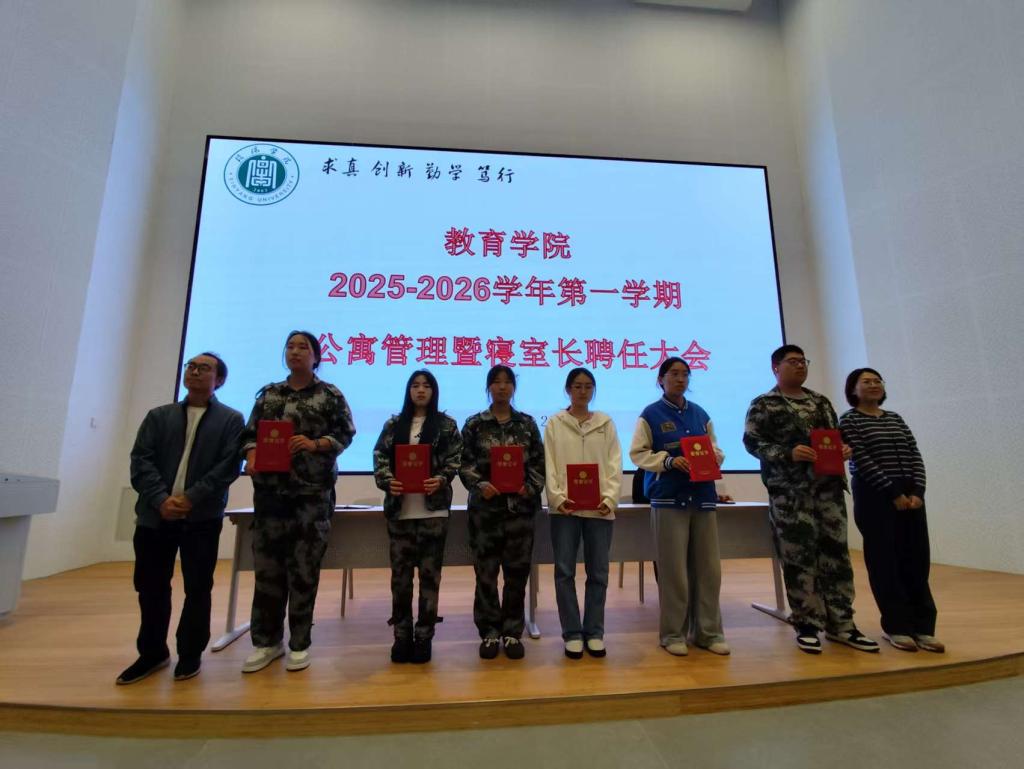 随后,会议进入庄严的聘任仪式环节。在热烈的掌声中,太阳集团tyc138党总支书记刘颖方和学工干事胡超为本次新聘任的寝室长和楼层长代表逐一颁发了聘书。这份聘书不仅代表着荣誉,更承载着学院对各位学生骨干的信任与殷切期望。