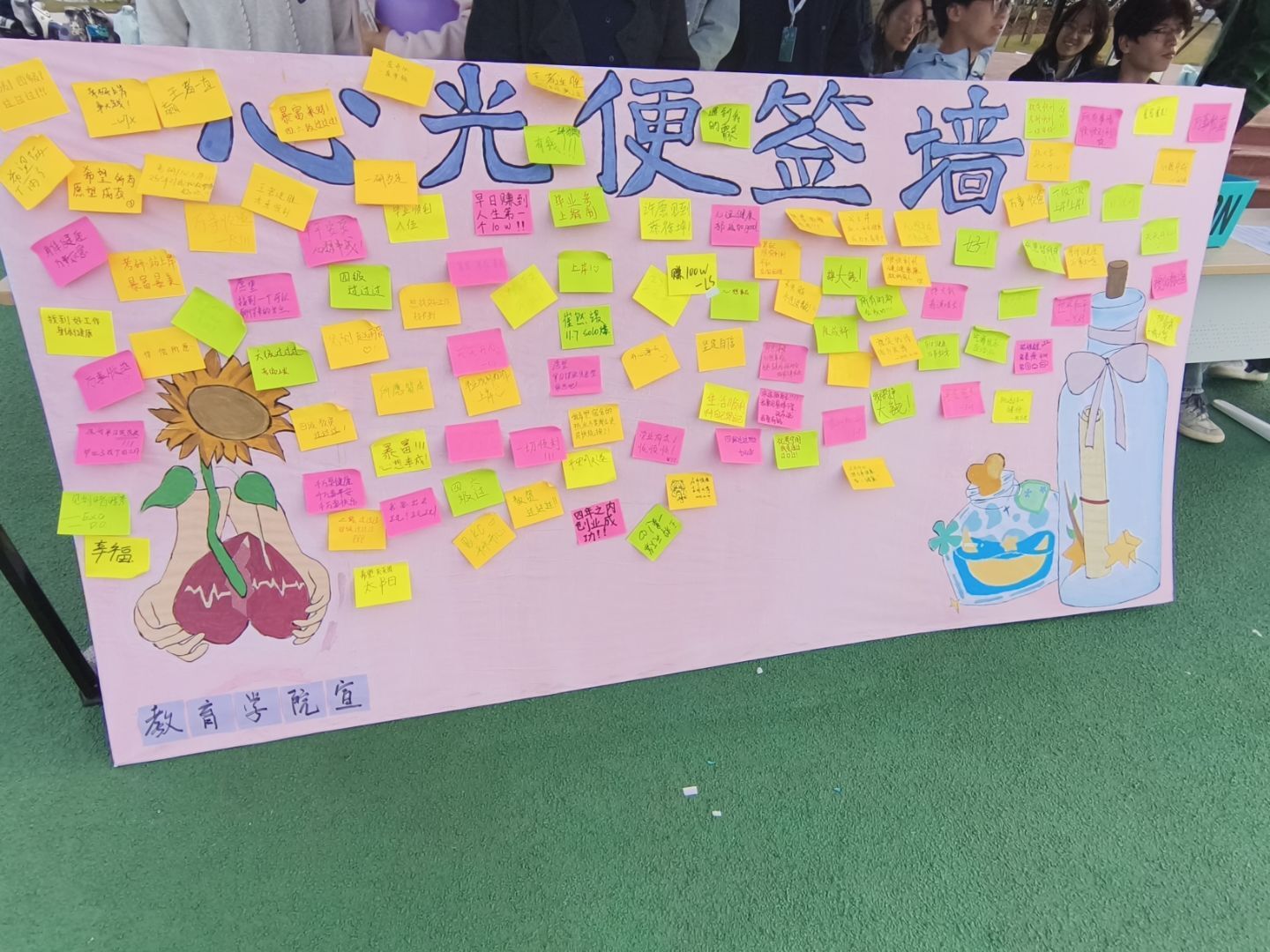 “心光便签墙”前,同学们手持便利贴,认真写下对自己的肯定——“今天高效完成复习,我超棒!”“未来继续勇敢做自己”,一张张承载正向能量的便签贴满打卡板,构成一道治愈的“心光风景线”,引导大家发现自身闪光点,强化自我认同。