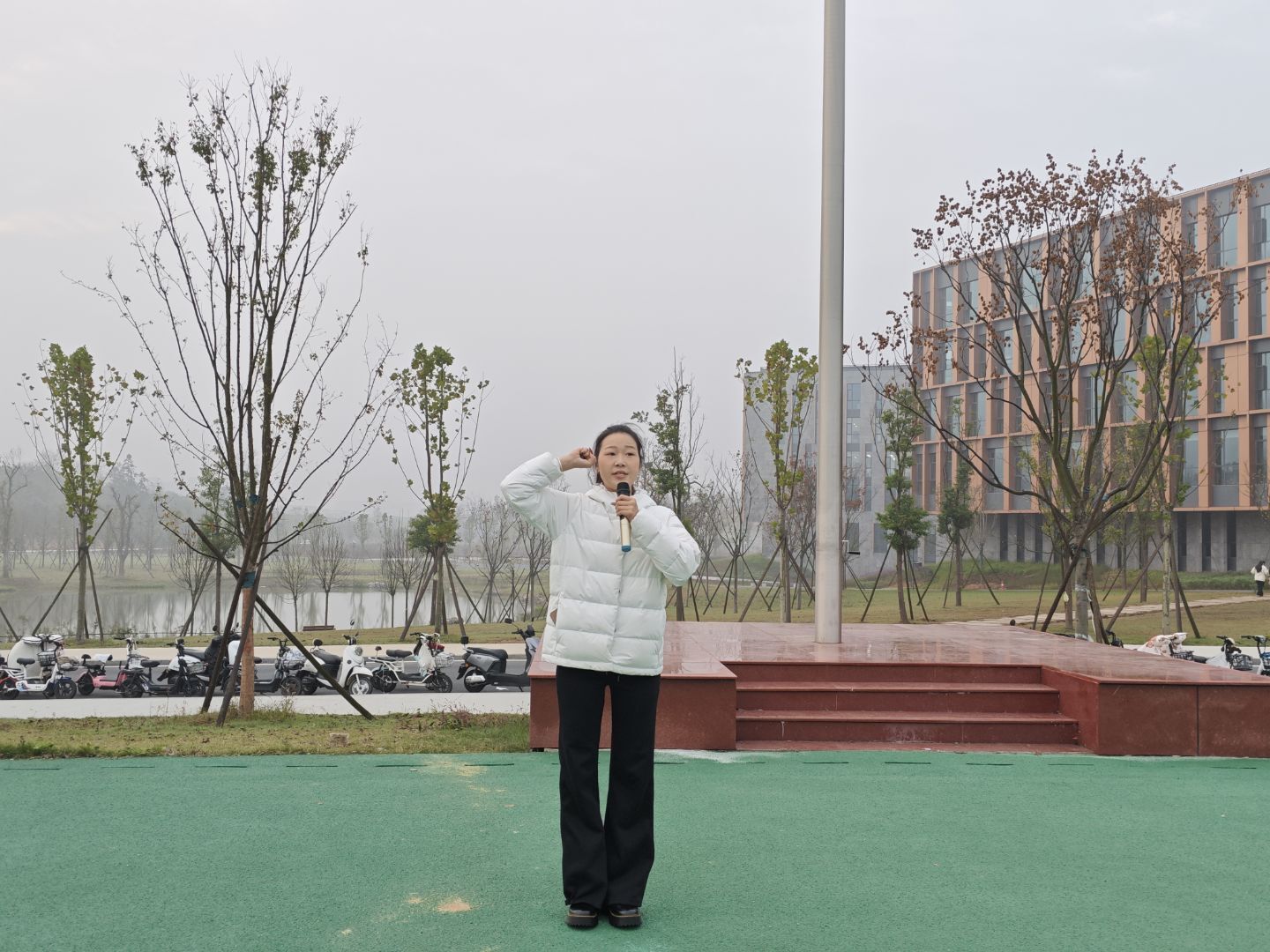 升旗仪式后,25心理本01班段诗霖同学带来《致敬火焰蓝,守护平安梦》的主题演讲,演讲歌颂了逆行出征、默默守护家国安宁的平凡英雄,呼吁同学们以实际行动筑牢消防安全防线。最后,25小教本03班单子佳同学以青春之名带领全体师生宣誓,响亮的声音在空中回荡,展现了师生们致敬英雄、践行责任的决心。
