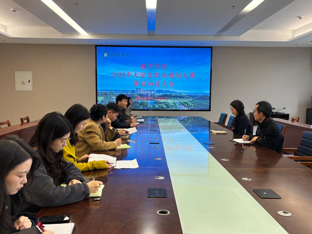 11月10日上午,学院2025年职业规划大赛赛前动员大会隆重召开,党总支书记刘颖方、学工干事胡超及全体辅导员参会。刘颖方书记高度重视赛事组织与指导工作,她要求辅导员团队精准动员各年级学生,结合教育行业发展趋势与专业特色,引导学生将个人职业理想与教育强国建设需求相结合,在赛事中锤炼专业本领、明晰发展路径。