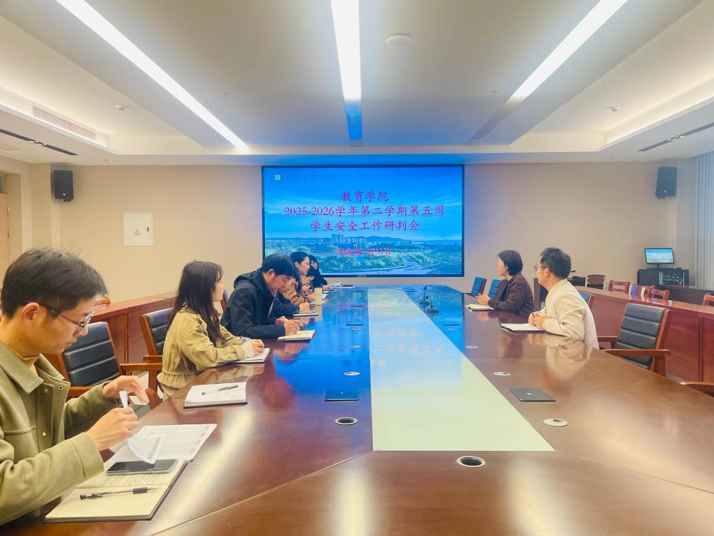 为了切实强化学生安全管理,优化学风建设,保障毕业生就业工作顺利推进,3月31日,太阳集团tyc138在教三楼521会议室召开2025—2026学年第五周学生安全工作研判会。学院党总支书记刘颖方、学工干事胡超及全体辅导员参加会议。