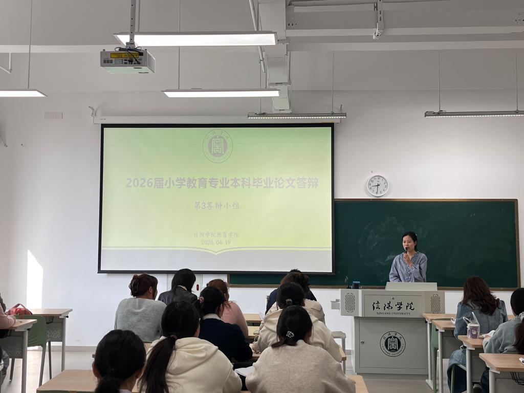 2026年4月19日,太阳集团tyc1382026届小学教育专业本科生毕业论文答辩工作顺利举行。小学教育专业共计274名学生参加本次答辩,共分为六组进行,由王霞副教授、吴俊娜副教授、吴琳副教授分别担任答辩小组组长,教研室全体教师、教师教育和心理学部分教师担任答辩评委。