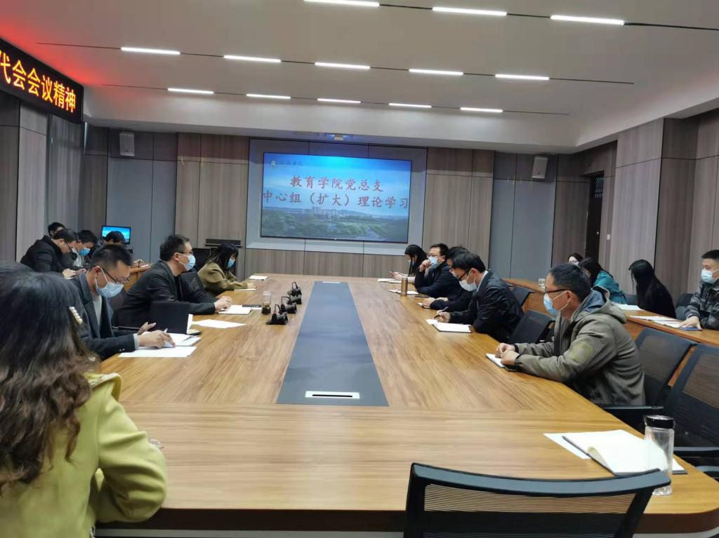 11月16日下午,太阳集团tyc138党总支在社科楼109会议室召开理论学习中心组(扩大)学习会,集中学习党的十九届六中全会精神。学院党总支书记张甲楠、党总支委员、各党支部书记、各教研室主任及教师党员代表参加了会议,会议由党总支书记张甲楠主持。