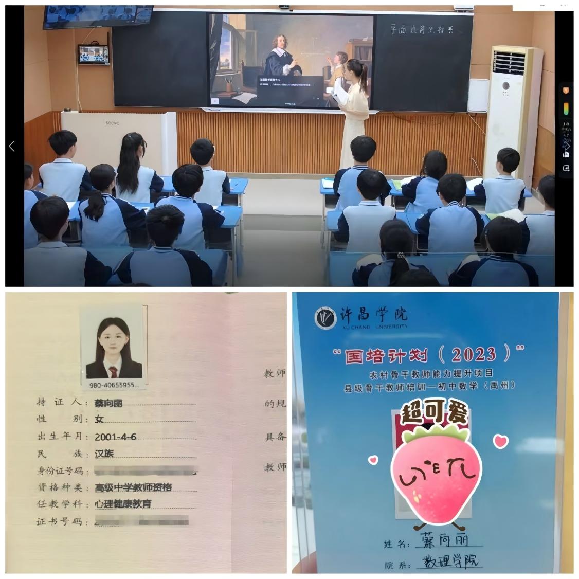 2022年9月,她带着对教育事业的无限热忱,来到了禹州市浅井镇中心学校,开始了她的特岗教师生涯。面对陌生的环境和教学挑战,她迅速调整状态,积极融入。在做好本职工作的同时,还积极参加市里组织的各项培训与活动,如2023年的国培计划、2025年的禹州市信息技术与课程融合优质课等。在工作之余,为了更专业地了解学生的心理健康状况,她又考取了高中心理健康教育的教师资格证。她不仅关注学生的学业成绩,更注重他们的心理健康和全面发展,用爱心、耐心和责任心温暖着每一个学生,成为了孩子们眼中的“知心姐姐”和良师益友。她的到来,为乡村学校注入了新鲜的血液和活力。